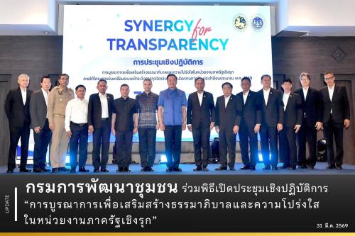 กรมการพัฒนาชุมชน ร่วมพิธีเปิดประชุมเชิงปฏิบัติการ “การบูรณาการเพื่อเสริมสร้างธรรมาภิบาลและความโปร่งใสในหน่วยงานภาครัฐเชิงรุก”